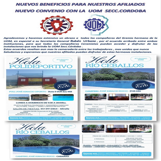 Noticias y novedades de la Unión Obrera Cerámica de Córdoba