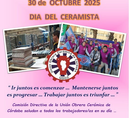 U.O.C.C F-7 COMUNICADO OCT-202524 octubre, 2025 30 octubre, 2025 Comisión Directiva de la Unión Obrera Cerámica de Córdoba saludan a todos los trabajadores/as en su día … Share0 Leonardo Noriega Related posts24 octubre, 2025U.O.C.C F-7 COMUNICADO OCT-2025+ INFO19 octubre, 2025DIA DE LA MADRE 2025 U.O.C.C.+ INFO10 septiembre, 2025INVITACION PARA ESTE 30 DE OCTUBRE – DIA DEL CERAMISTA+ INFO Deja una respuesta Cancelar la respuestaTu dirección de correo electrónico no será publicada. Los campos obligatorios están marcados con *Comentario * Nombre * Correo electrónico * Web Guarda mi nombre, correo electrónico y web en este navegador para la próxima vez que comente.